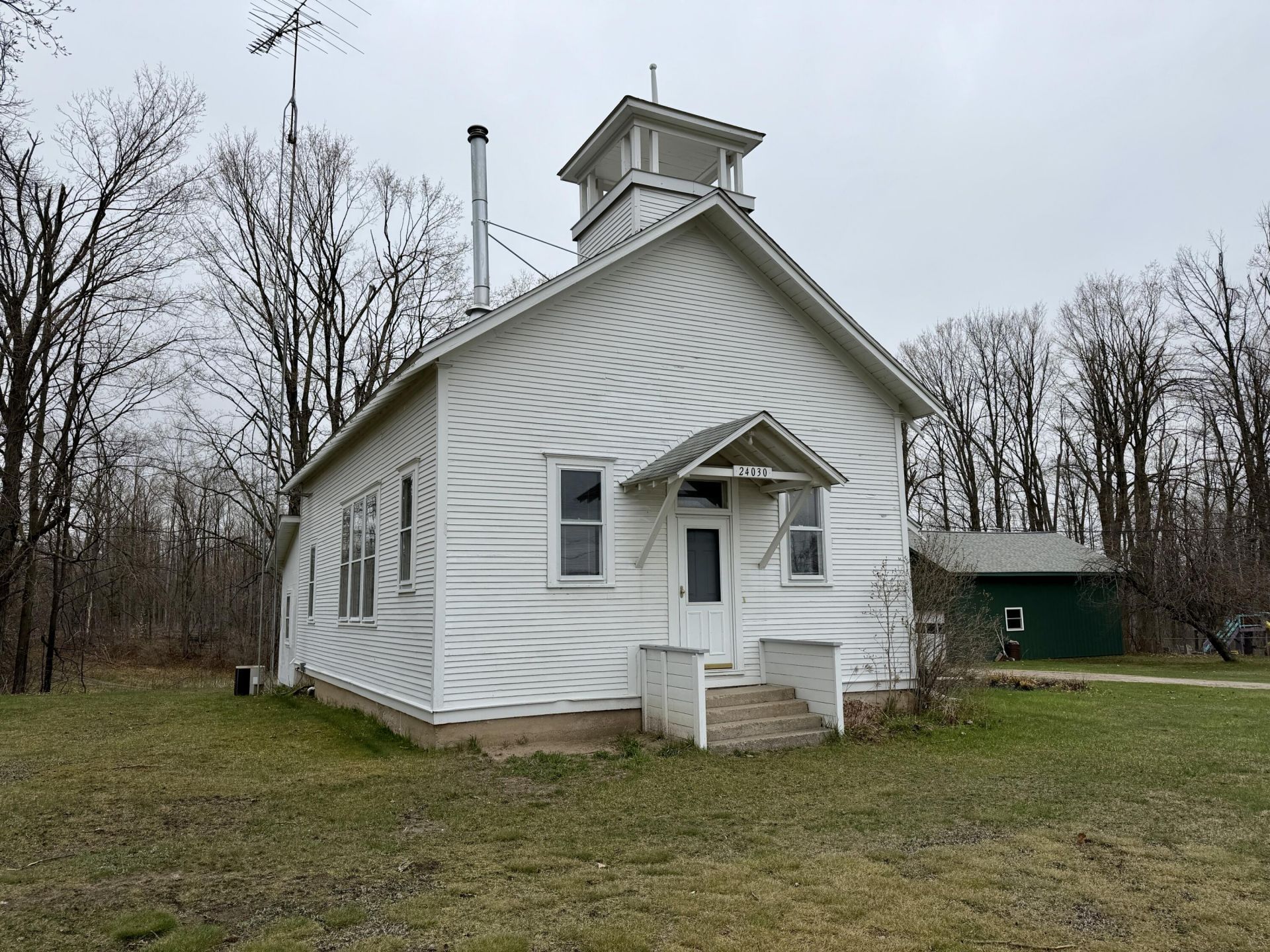 Step into history with this charming former schoolhouse, now an inviting open-concept home. The iconic bell tower and original classroom lights are still intact. The interior glows from the natural light, high ceilings with wood beams and the gleaming hardwood floors. Choose the efficient wood stove or natural-gas furnace with central air for year-round comfort. Recent updates include PEX plumbing and a fresh shower surround, plus a spacious utility room. Outside, 79 rolling acres beckon with maple hardwoods, 150 apple and 2 pear trees, a wildlife-friendly cedar swamp, scenic trails, and a 1-acre, 15-ft-deep pond stocked with bluegill and crappie. The basement and 2nd story garage are perfect for storage. This property offers so many different opportunities with its abundance of space.