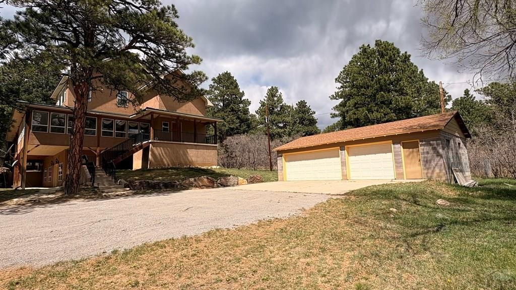 Discover mountain living at its finest in this spacious 5-bedroom, 3-bath home set on a beautiful one-acre lot surrounded by tall ponderosa pines. Located in the quiet, scenic community of Rye, this property offers privacy, comfort, and room to grow???all with breathtaking Colorado scenery right outside your door. Inside, the home welcomes you with impressive tall ceilings that create an open, airy feel throughout. The generous 5,000+ sq ft layout provides multiple living areas, making it easy to entertain, relax, or accommodate guests. The heart of the home is the large kitchen, designed for both everyday cooking and hosting. It features abundant counter space and a double oven, perfect for meal prep, baking, or holidays with family.